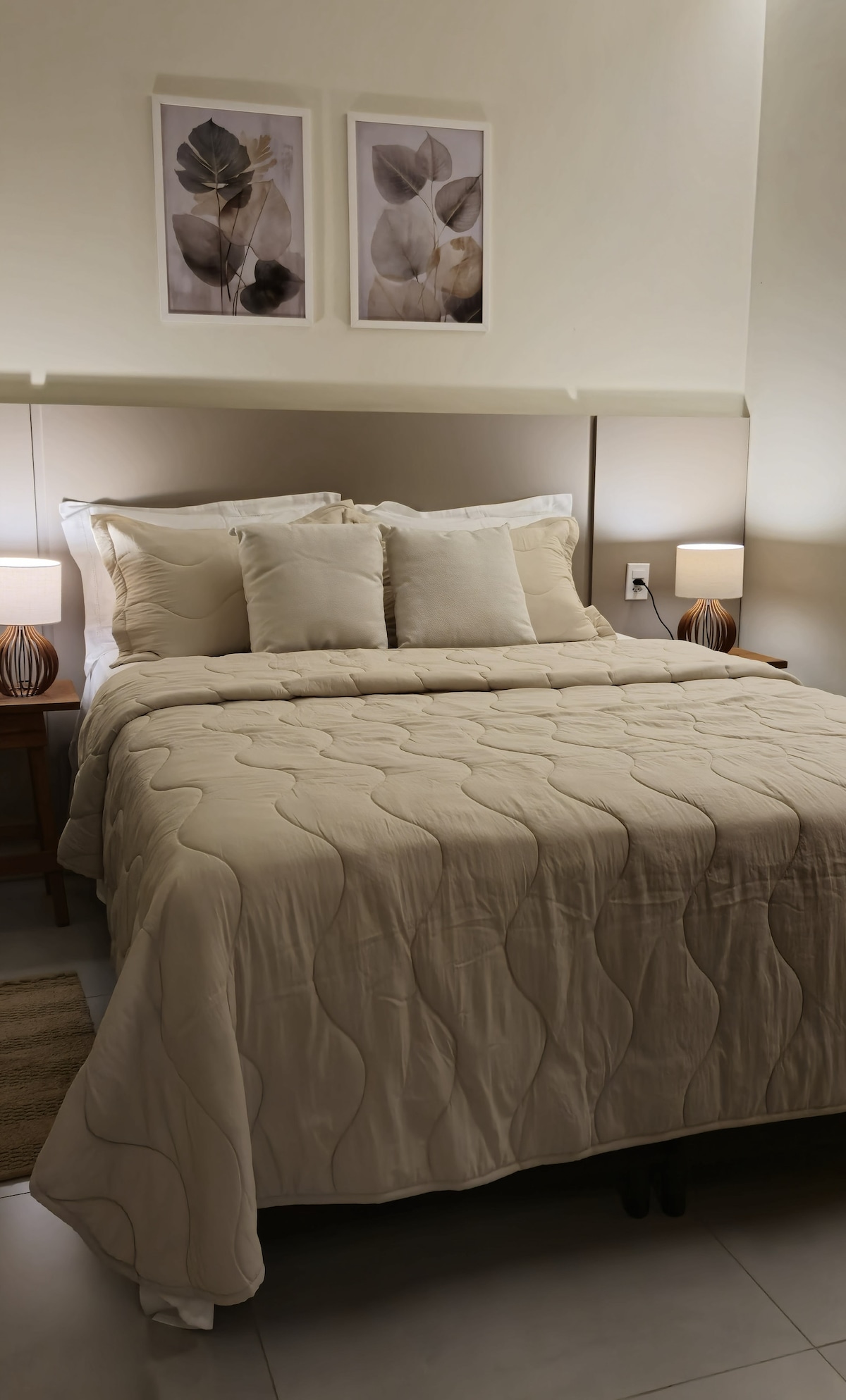 Suiten vår ble designet for de som søker komfort, privatliv og praktiskhet. Atmosfæren er luftkondisjonert, stille og koselig, med LED-belysning som gir velvære og varme. Den har et komplett hjemmekontor, ergonomisk svingbord og stol, trådløst nettverk med høy hastighet, smart-TV, minibar og varm dusj. Den har en garasje i den indre gårdsplassen og ligger bare minutter fra Porto Velho Shopping, med enkel tilgang til butikker og tjenester. Perfekt for jobb, hvile eller langvarige opphold.