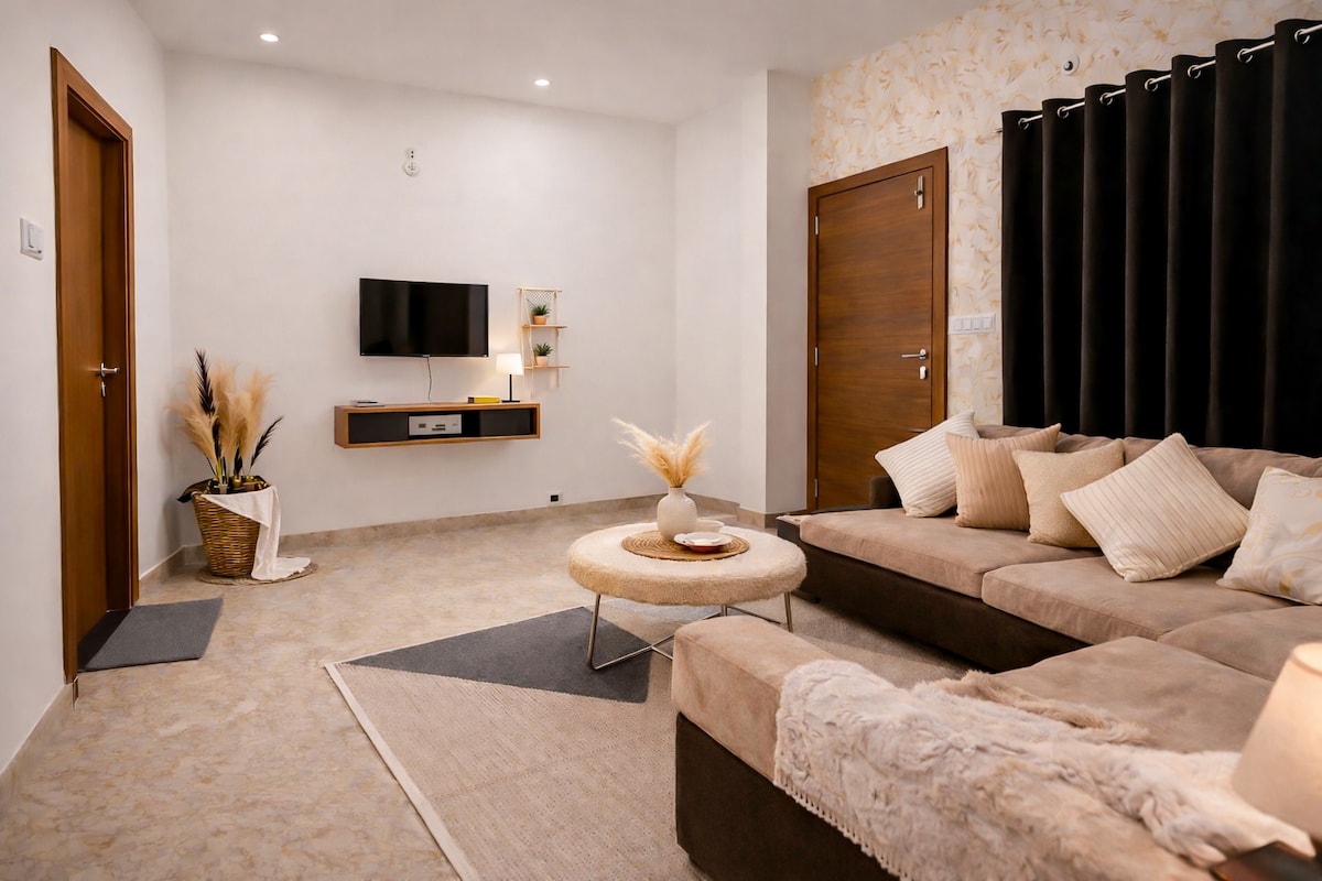 Velkommen til Sobera Stays, en koselig og komfortabel leilighet bare to km fra Rani Kamlapati Station – perfekt for par, familier eller alenereisende. Nyt en avslappende seng, en komfortabel sofa, et fullt utstyrt kjøkken og trådløst nettverk med høy hastighet. – alt på et fredelig sted i hjertet av Bhopal. Gå ut for å utforske kafeer, markeder, innsjøer og bylivet. Kom tilbake til det rolige tilfluktsstedet med gratis parkering, gjennomtenkt innredning og alle hjemmets bekvemmeligheter.