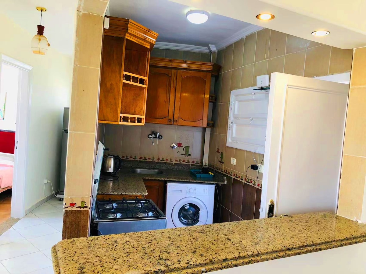 Nyt et avslappende opphold i denne stilige to-romsleiligheten i hjertet av Mamoura, et av Alexandrias mest fredelige og trygge områder. Leiligheten har en romslig, privat hage, perfekt for å slappe av, spise utendørs eller grille med familie og venner. Boligen inneholder: • To komfortable soverom med koselige senger. • privat hage med grillplass. • fullt utstyrt kjøkken • moderne bad • Komfortabelt oppholdsrom. • Første etasje med enkel tilgang • Stille og trygt nabolag