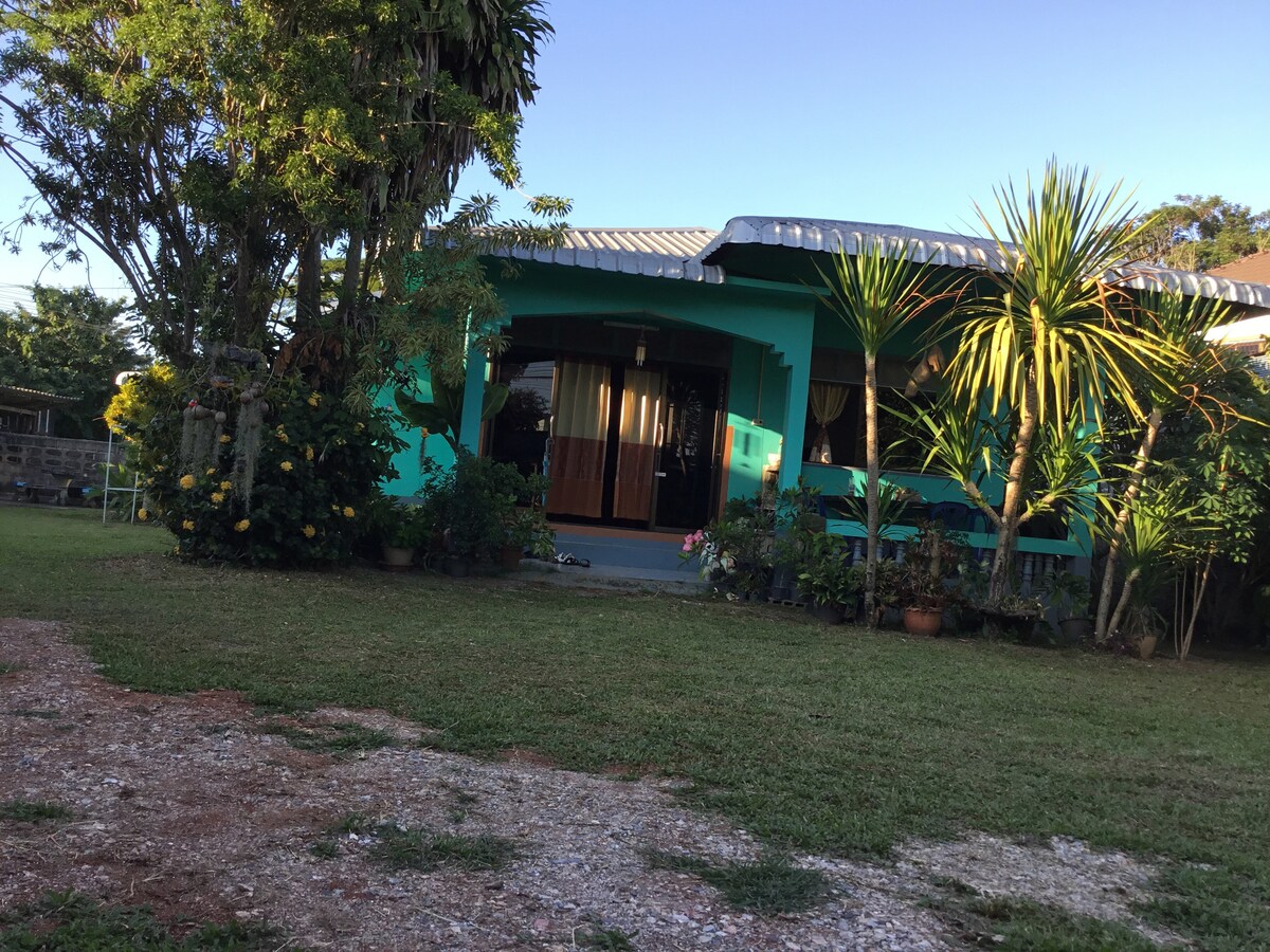 Bamblue 77 er et drømmende tilfluktssted! Vertene dine, tidligere aircrew, mor og far, behandler deg som VIP-er. Nyt frodig utsikt over Kok-elven og grøntområdene fra dette tilfluktsstedet. I nærheten, en sjarmerende familiegård serenaderer deg med lyden av beitende kyr og bøfler om morgenen. Det er bare en 45-minutters kjøretur fra Chiang Rai sentrum. Omfavn roen og den luftige lykken – den perfekte ferien din!