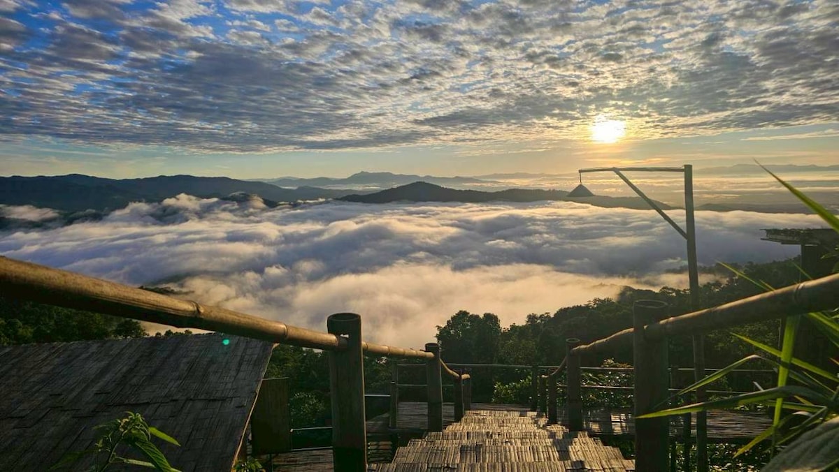 Reis til Baan Rai Plai Tawan, ditt rolige private fristed som ligger i de vakre åsene i Mae Taeng i Chiang Mai. Våkn opp til et fantastisk hav av tåke som ruller gjennom dalen, og avslutt dagen med en spektakulær solnedgang over fjellkjeden Doi Suthep, alt fra din egen balkong. Dette er det perfekte feriestedet for par, små familier eller alle som søker fred, natur og uforglemmelige utsikter.