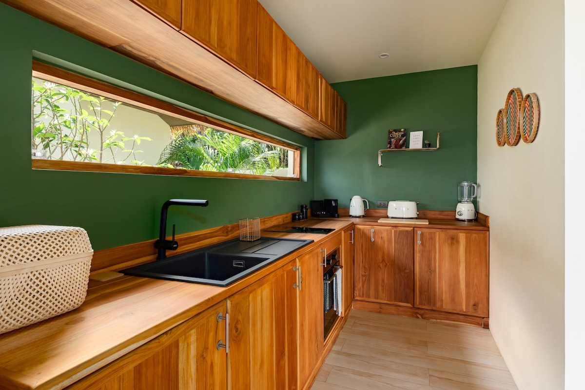 * Bare en 30 sekunders spasertur til en vakker, rolig sandstrand. * Dekket terrasse utendørs med havutsikt. * Pålitelig og veldig raskt trådløst nettverk. * King size-seng med sengetøy i egyptisk bomull med 300 tråder * Sett med dusjhåndkle + strandhåndkle for alle bestilte gjester * 2 AirCons * Varm dusj. * flatskjerm-TV med strømming av TV + DVD + mange DVD-plater * komplett kjøkken med apparater og kjøkkenutstyr * Gangavstand til restauranter, butikker, yoga, hovedveien. * Romantisk, rolig og fredelig miljø