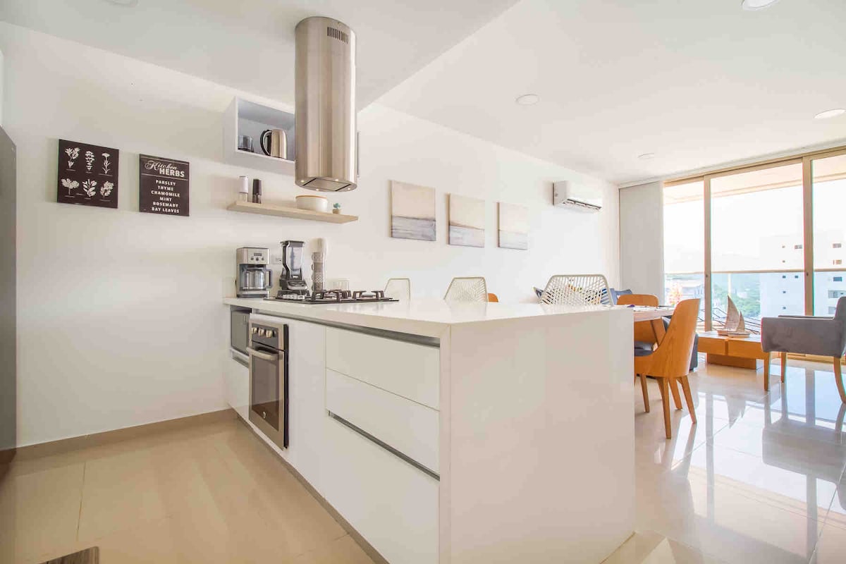 Vakker leilighet i Barranquillas nordlige sone på 46th St (ved avkjørselen til Cartagena). Det har to soverom med eget bad, walk-in closet, smart-TV. 6 senger. Sosialt bad, arbeidsområde, stue med smart-TV og spisebord. Fullt utstyrt kjøkken samt vaske-, tørke- og strykestasjoner. DYREVENNLIG med senger og tallerkener til kjæledyrene dine. Hjemlig miljø, nytt, stille, med moderne fellesområder som treningsstudio og basseng. Du vil føle deg hjemme her.