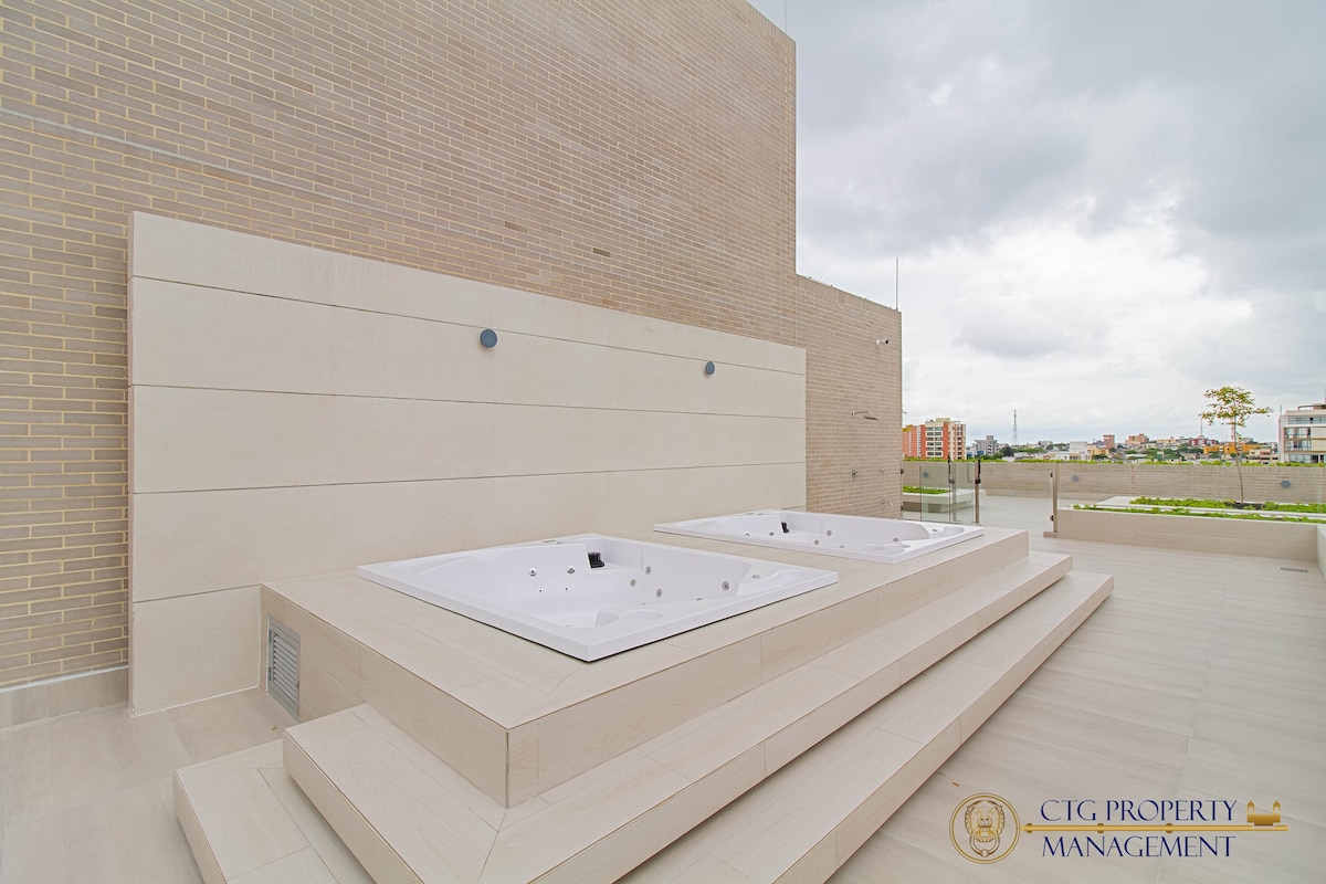 Nyt en uforglemmelig opplevelse i denne moderne leiligheten i loftsstil i 9. etasje i GZ Tower: * Fleksibel innsjekking og utsjekking *trådløst nettverk 900 Mbps * Ett kvartal fra den iberoamerikanske klinikken og tre kvartaler fra Viva Mall. * Ett soverom med queensize-seng og klimaanlegg. * En stue med sovesofa og klimaanlegg. * Vaskemaskin/tørketrommel. * Smartfit-treningsstudio i nærheten (mot betaling). *Gratis parkering * Ideell beliggenhet: nær kjøpesentre, store klinikker og turistområder.