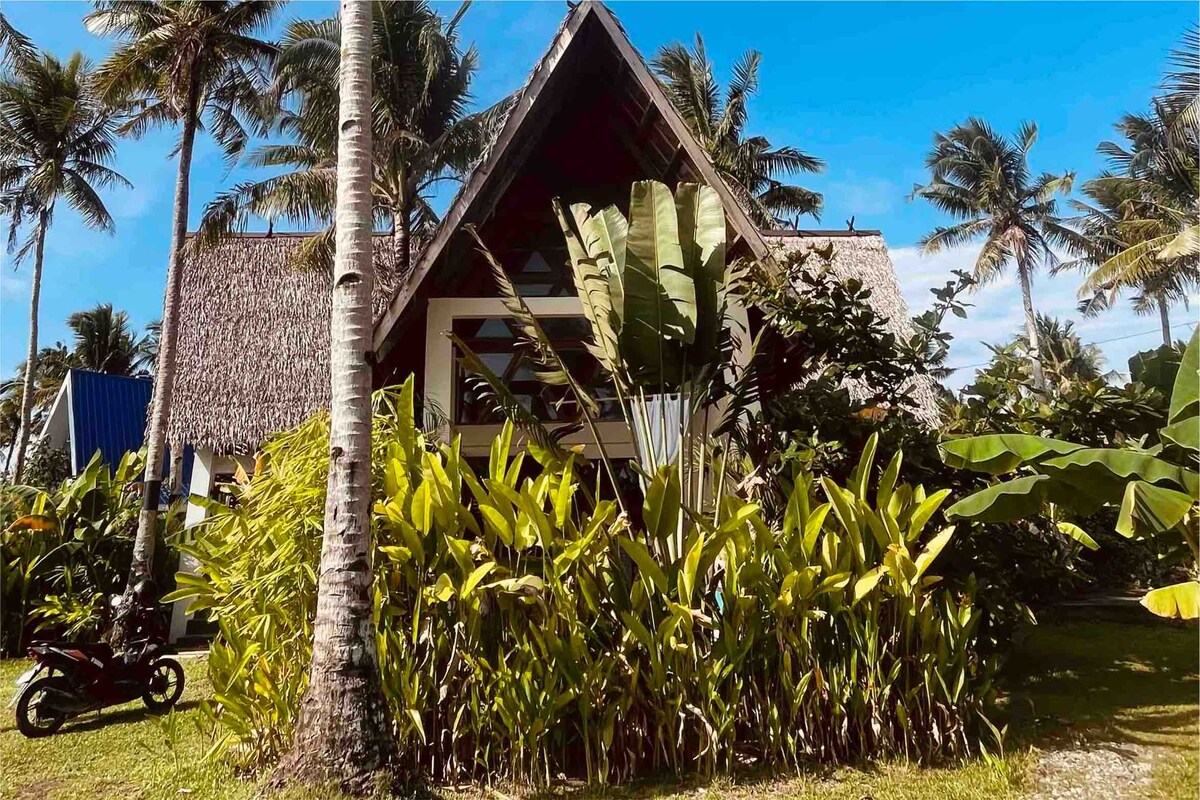 Velkommen til Bamboo Living Siargao, en miljøvennlig A-rammevilla med soverom, bare 12 minutter unna General Luna. A-rammehuset ligger på en eiendom på 2200 kvm og er bare 100 skritt fra stranden. Du kommer til å nyte et fredelig fristed i nærheten av de beste surfestedene. Villaen har en terrasse med utsikt over hagen, to dagssenger, en kingsize-seng og et privat utendørs bad. Fasiliteter inkluderer Starlink Wi-Fi, aircondition og tekjøkken. Ideell for oppmerksomme reisende som søker privatliv, natur og komfort.
