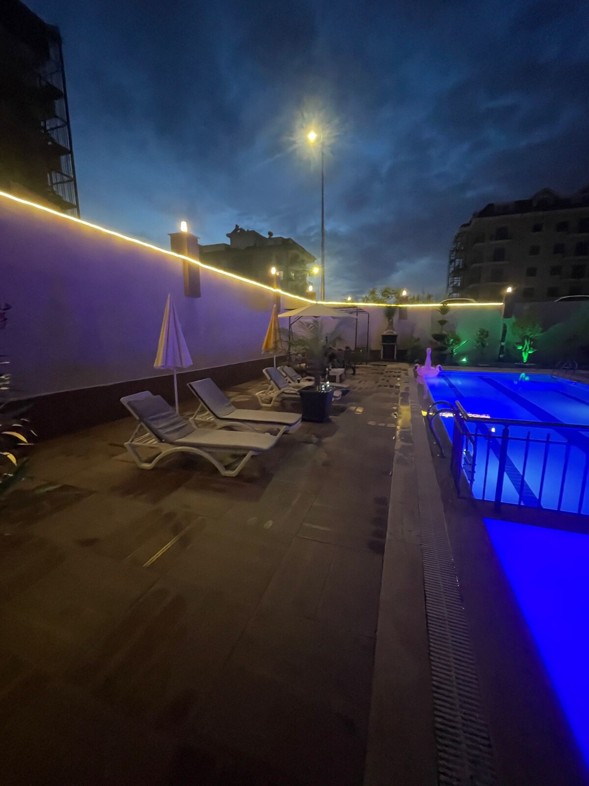 Salam Résidence 2 à Antalya, Alanya, un paradis pour les femmes et les familles. Profitez d'une piscine exclusive pour femmes, ainsi que de 2 piscines mixtes avec toboggans pour la famille hommes femmes et enfants, d'un spa luxueux, salle de sport et de terrains de football et basketball. Avec une vue mer spectaculaire et la plage à proximité, cette résidence offre prestige et loisirs. Tous les commerces et commodités restaurants sont accessible à pied. Idéale pour le repos et la tranquilitité.