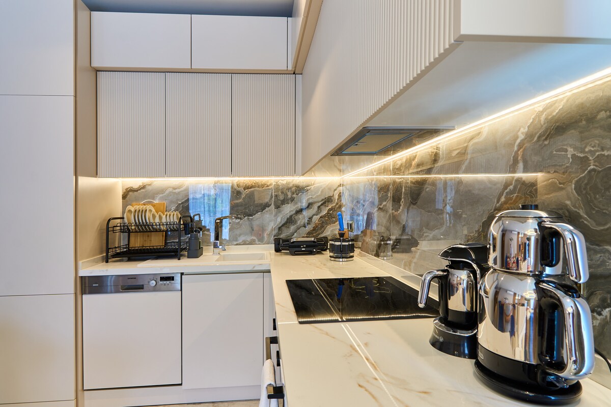Nyt luksus på Armani B104, en stilig Mahmutlar-leilighet bare 5 minutters gange fra stranden. Nyt bekvemmeligheten med en daglig gratis shuttle til Alanya sentrum og vår private strand. Oppdag et marked, bar og restaurant på stedet, samtidig som du slapper av på både innendørs og utendørs basseng. Skjem deg bort med spa-fasiliteter-sauna, hamam, massasje, jacuzzi—all innenfor rekkevidde. Ditt elegante tilfluktssted venter, hvor alle detaljer sikrer en perfekt blanding av komfort og raffinement.