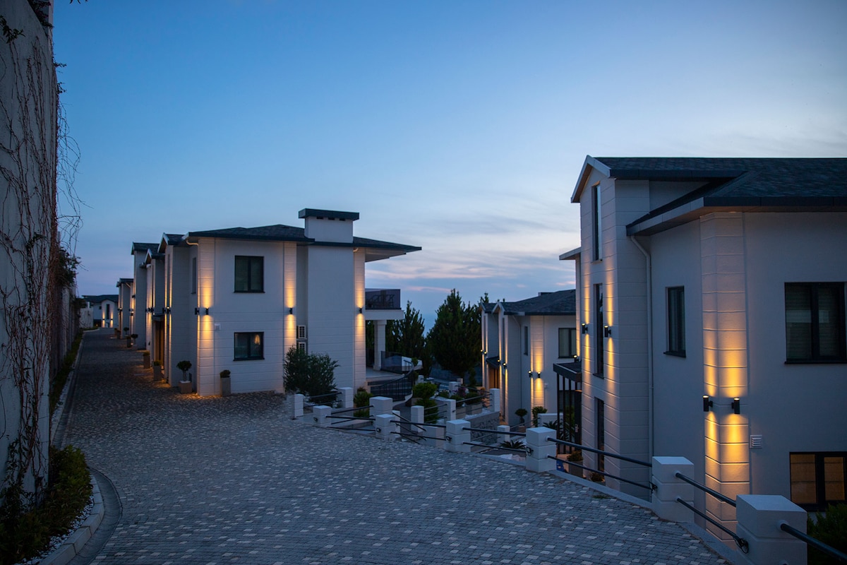 Gå inn i en verden av ro og luksus i dette nybyggede huset og tilbyr en spektakulær havutsikt. Her kan man virkelig unne deg selv og nyte det luksuriøse saltvannsboblebadet på takterrassen. Takterrassen er på over 100 kvm. På inngangsnivået er det et privat saltvannsbasseng for å slappe av. Det er også to Weber-griller tilgjengelig, én på takterrassen og én ved terrassen ved bassenget, hvor du kan samles med dine kjære og nyte deilige måltider sammen.