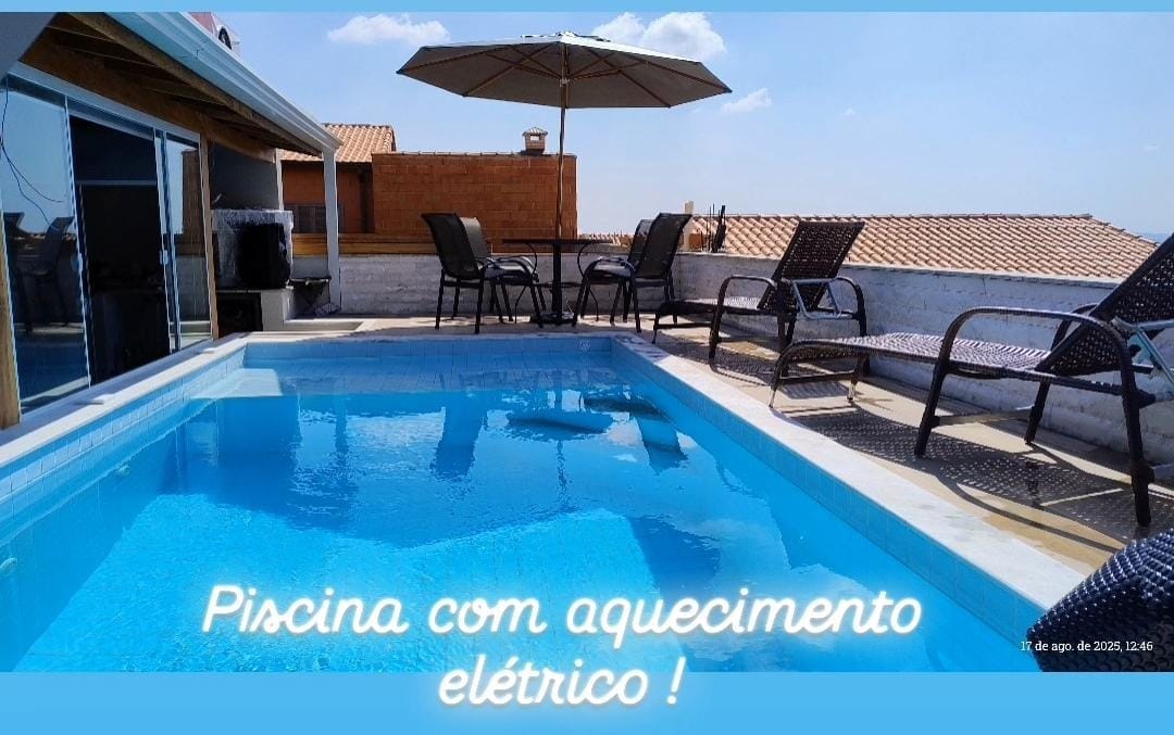 AGORA COM PISCINA AQUECIDA. SEMANA DE 13 A 20/12 livre Imóvel novo recém inserido no catalogo do AirBnb Condomínio Porta do Sol COM ACESSIBILIDADE Relaxe com sua família nessa acomodação com piscina coberta, area de lazer, rua sem saida. São 4 suites, sendo duas com ar cond e duas com ventilador teto Uma suite com ACESSIBILIDADE. Roupa de cama completa. Salão com churrasq. forno pizza, bar,cozinha,adega,mesa jogos,telão. Redário, FirePlace, paz, sossego e segurança.
