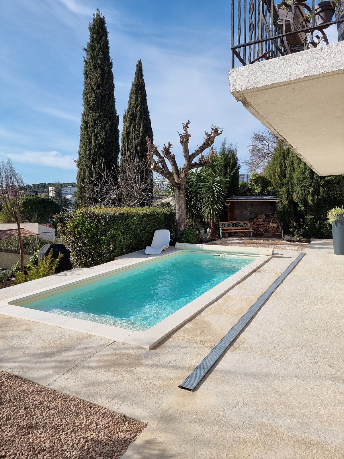 Velkommen til vår private oase for 1 eller 2 personer i hjertet av la roquette! Nyt det oppvarmede saltvannsbassenget omgitt av tropiske planter. Stedet vil tilby deg en oase av skygge og ro. Spis frokost, aperitiff eller kok ved bassenget på utekjøkkenet. Soverommet har klimaanlegg og er utstyrt med luksuriøst sengetøy av hotellkvalitet og økologisk sengetøy, for å sikre at oppholdet ditt er avslappende og minneverdig.