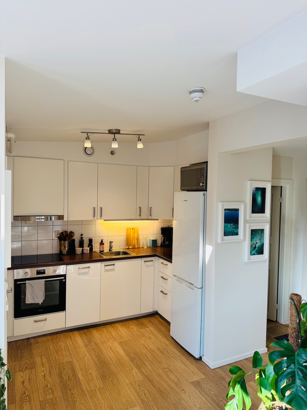 Welcome to this bright and modern 40 m² apartment on the 6th floor, overlooking the city with your very own private terrace – perfect for relaxing with a coffee or glass of wine. The apartment has one bedroom with a comfortable double bed and a spacious sofa bed in the living room that sleeps two. The bathroom is recently renovated, and the kitchen is fully equipped if you’d like to cook at home. Restaurants, cafés, and supermarkets are just around the corner.