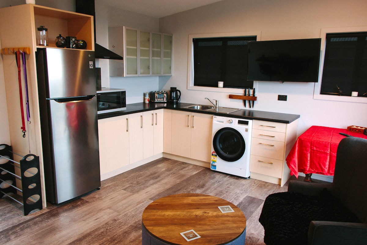 Gjennomtenkt, moderne design gjør Kingfisher Cabin til en unik opplevelse. Vi har skapt et privat, luksuriøst lite hjem som gir deg plassen du trenger for å fjerne deg komfortabelt fra hverdagens stress. Kingfisher Cabin ligger bare ti minutter fra Timaru og to timer fra Christchurch og Dunedin. Hytta ligger på jordbruksmark med en spektakulær utsikt mot havet. Den nybygde hytta er utsøkt utformet, med en avslappende og beroligende stemning.