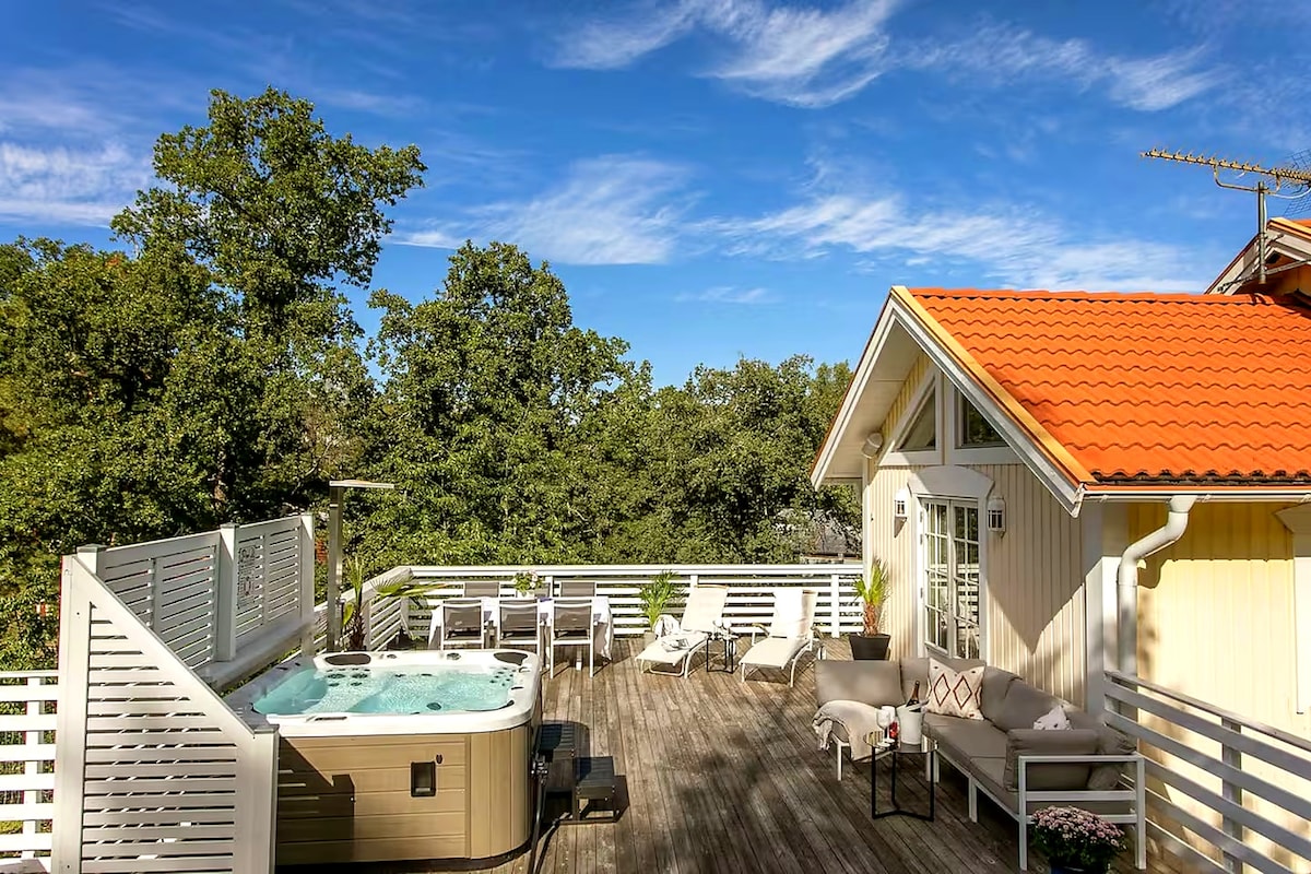 Drømmebolig med jacuzzi og hjemmekino 200 m til badet