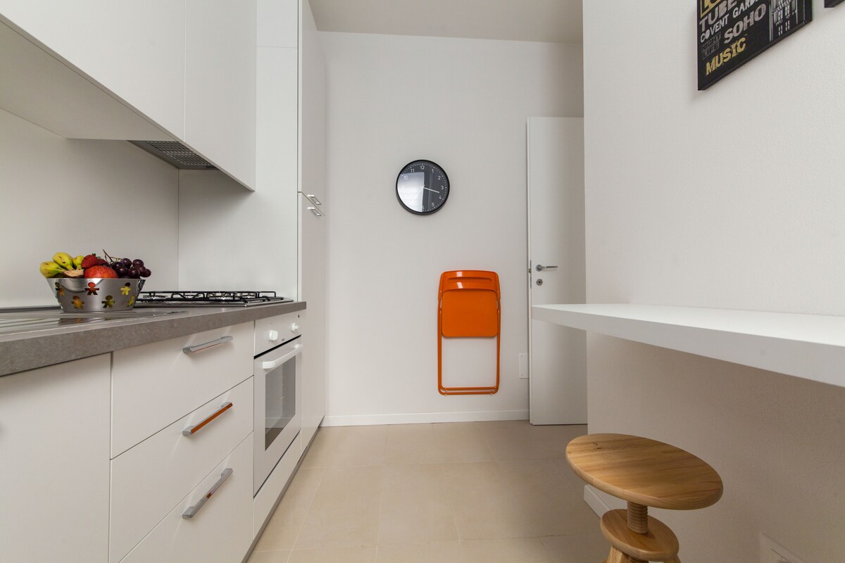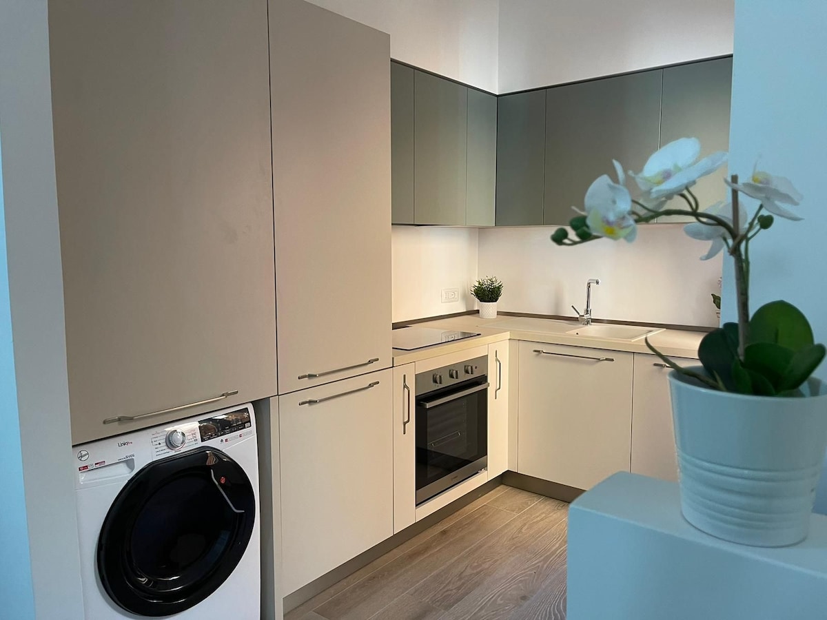 Studioleilighet ideell for forretningsopphold, par eller familier. I Riminis historiske sentrum, i nærheten av Palacongressi, stasjonen (1 stopp til messen) og havet. Dobbeltseng, dobbel sovesofa, kjøkkenkrok/barkrok med mikrobølgeovn, kjøleskap, vannkoker, Illy-kaffe og spisebord. Eget bad. Raskt Wi-Fi, smart-TV, klimaanlegg og vaskemaskin. Vugge og barnestol på forespørsel. Parkering, restauranter og tjenester innen gangavstand. Tilgang til Coliving-området med utstyrt kjøkken og stue.