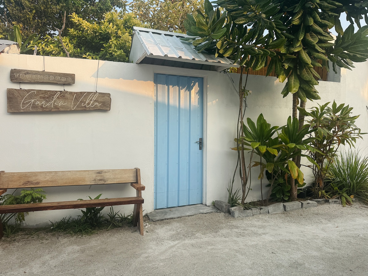 Et deluxe-rom med én kingsize-seng og én enkeltseng for en familie på tre personer. Dette komfortable rommet har klimaanlegg, gratis trådløst nettverk og eget bad. Våkn opp bare noen skritt unna stranden og den krystallklare lagunen. Utforsk pulserende rev, svøm med mantarokker eller delfiner eller fordyp deg i lokal øykultur. Ideell for par, venner eller enslige reisende som ønsker en fredelig, autentisk og budsjettvennlig maldivisk opplevelse. Rommet ligger i første etasje med to andre rom i huset.