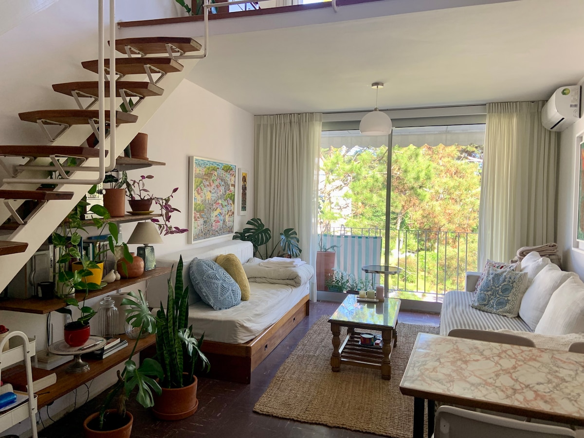 Spektakulær leilighet i Punta Ballena rett ved sjøen. Ved siden av Casa Pueblo, huset og museet til kunstneren Carlos Páez Vilaró. Den har to soverom med eget bad, integrert kjøkken og spisestue, stue og en stor terrasse. Klimaanlegg og automatiske persien. Sengetøy, håndklær, strandstoler og parasoll inkludert. Valgfri hushjelp mot ekstra kostnad. Valgfrie sykler mot ekstra kostnad.