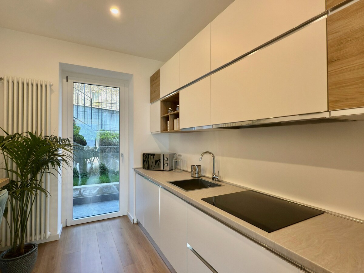 Helt ny luksuriøs leilighet i sentrum av Como, med utsikt over innsjøen. Plassert ved siden av den berømte Piazza de Gasperi, hvor du finner Funicolare til Brunate, innsjøens fe og restauranter. Den moderne leiligheten ligger i andre etasje med heis direkte til leiligheten. Stort soverom med dobbeltseng, fullt utstyrt kjøkken, stue i italiensk stil, solrik balkong og bad med dusj. Opplev den italienske prestisjefylte livsstilen i Como mens du slapper av med utsikt over innsjøen.