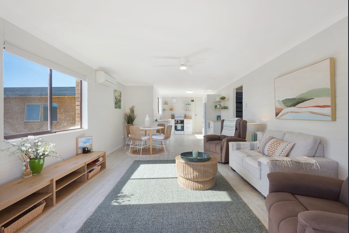Newly renovated 2 bedroom ground floor apartment offering complete privacy with exceptional views of Merimbula's emerald ocean and lake. Self contained unit, including fully equipped kitchen and Weber BBQ facilities. Ideal location, on your doorstep is access to the new lake view elevated board walkway enabling a 5 minute walk to Bar Beach (with seasonal kiosk + BBQ facilities) and 15 minute walk to the main high street. A 5 minute drive away is the Merimbula boardwalk.