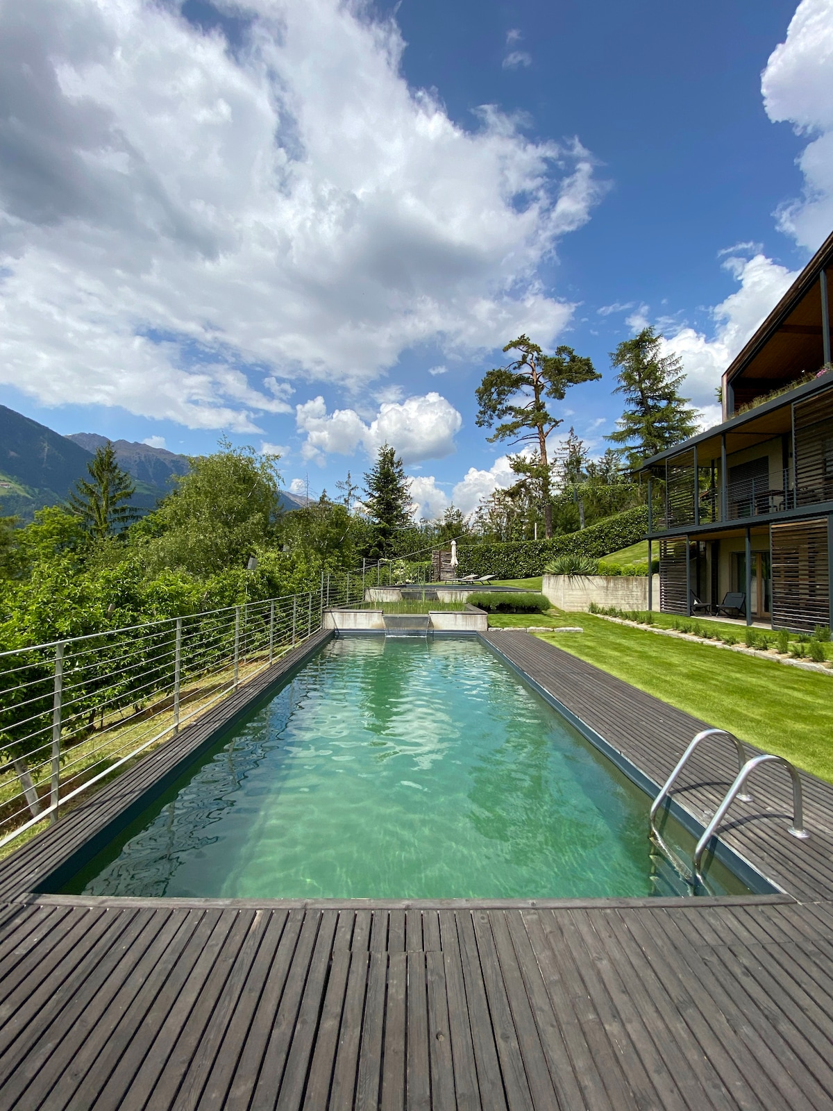Huset ligger i en svært rolig drømmeplassering i frukthagene i Etschtal. Leiligheten ligger i første etasjen, er 120 kvm stor og har plass til opptil 6 gjester. Bolzano ligger 10 minutter unna, Merano 20 minutter unna, og ski- og turområdene i Dolomittene ligger 40 minutter unna. Det er sykkelstier rundt hjørnet og turmuligheter foran huset. Gjestene har tilgang til 2 parkeringsplasser i den lukkede gårdsplassen, hver ekstra parkeringsplass koster 10 €/dag