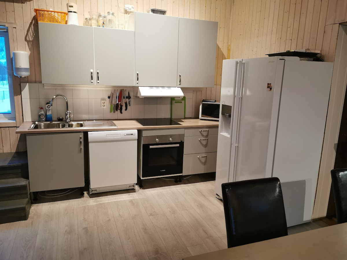 A small hour drive from Tromsø, or a bus ride directly from Tromsø Prostneset to your new doorstep! Skiing, hiking, fishing and northern lights. Slapp av ved hav, fjell og nordlys. Her har du plass til hele familien i en leilighet med flere fantastiske turmål gjennom alle årstidene. Her kan du finne roen mens du utforsker nærområdene til fots, ski eller med båt. 30 minutters kjøretur til Lyngseidet og Tamokdalen. 1 time og 15 min til Tromsø med bil, og tilsvarende til Kilpisjärvi.