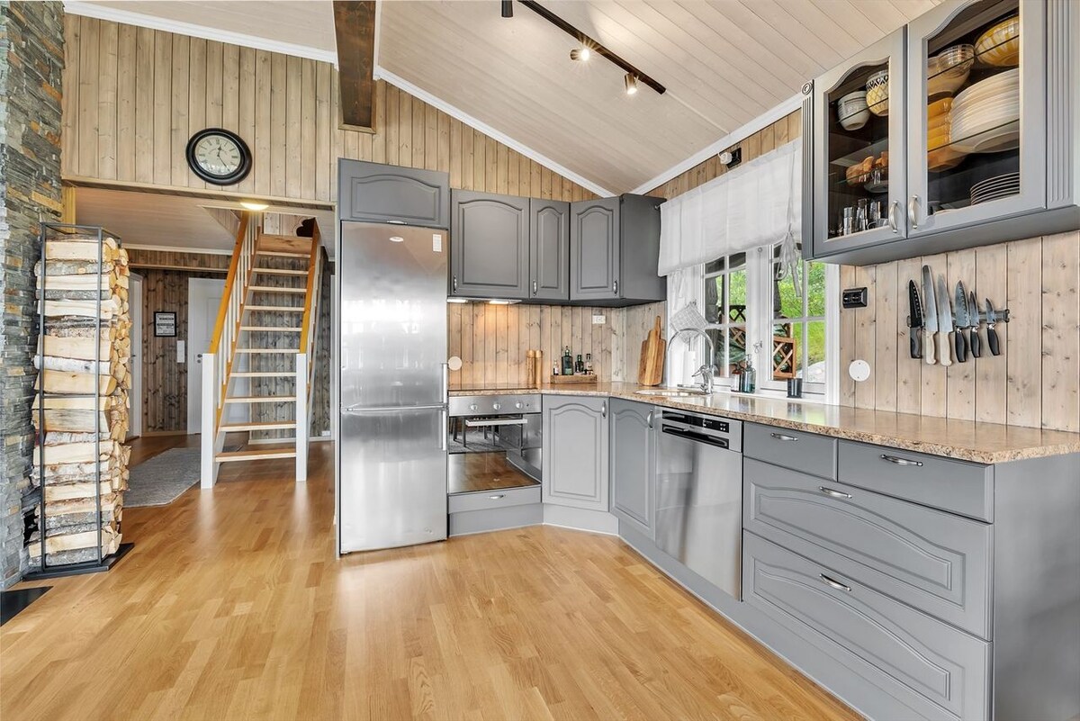 Dette sjarmerende fritidhuset, ligger idyllisk til på en ås med panoramautsikt over Fjellfroskvannet og de majestiske fjellene rundt. Her kan du nyte den fredelige atmosfæren i ett hus hvor du har absolutt alt du måtte trenge til både korte og lengere opphold. Borte fra byens bråk og ståk kan du her nyte den spektakulære utsikten og naturen i sin fulle prakt mens den skifter med årstidene.
