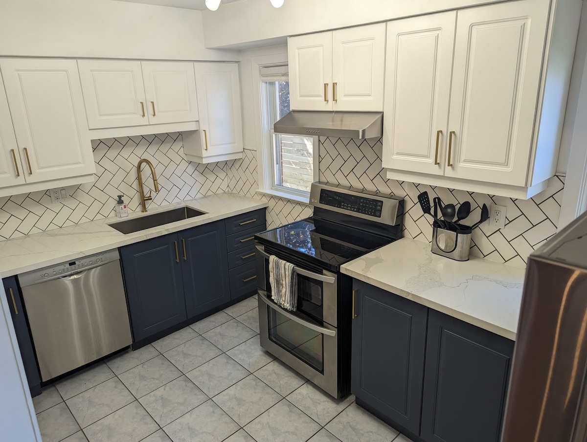 Luksuriøs feriebolig med tre soverom | førsteklasses beliggenhet | gratis parkering Denne private leiligheten med tre soverom er nyoppusset og tilbyr moderne komfort og bekvemmelighet. Har luksuriøst sengetøy i 100 % bomull, fullt kjøkken med espressomaskin, to fullt utstyrte bad, smart-TV, trådløst nettverk og nøkkelløs inngang. Trinn fra butikker, spisesteder og transitt. 10–20 min til sentrum, <10 minutter til Pearson lufthavn og kjøpesentre. Inkluderer to GRATIS parkeringsplasser. Bestill oppholdet ditt i dag!