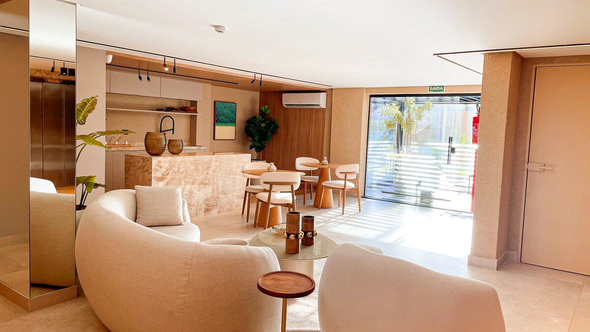 Dette stedet har sin egen stil, ditt øyeblikk med føttene i sanden på Manaíra-stranden. Vi planlegger alt for at du skal få den beste opplevelsen. Vi har plass til opptil 2 personer. Sengetøy med 300 tråder Trussardi bade- og strandsett. Fasiliteter: L'occitane Dobbelt blackout for perfekt søvn Nespresso kaffemaskin Vinkjeller Minibar Steamer (vertikalt strykejern) Vinglass og musserende vin i krystall Daglig hushjelp 24-timers resepsjon Basseng med uendelig kant Våt bar Porte-cochère