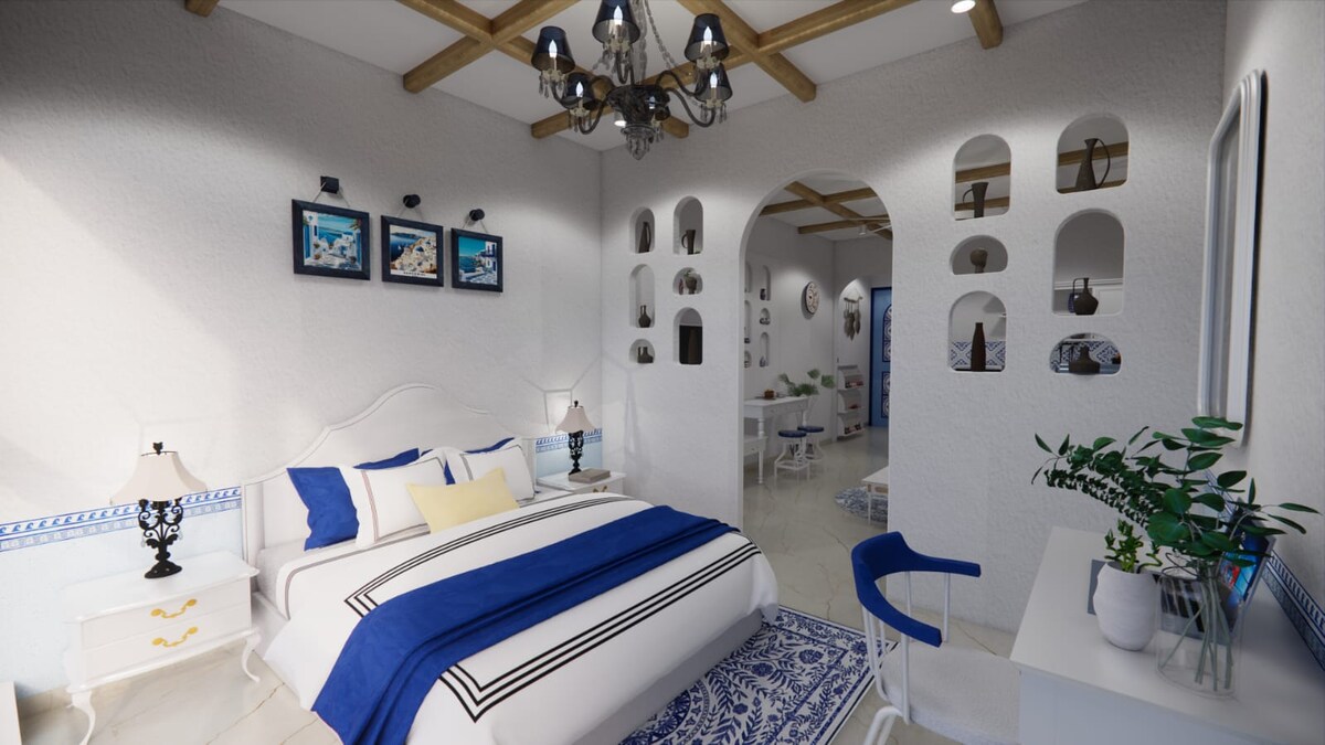 Bare tre km fra Balewadi High Street og bare 600 meter fra Mumbai–Bangalore Highway. Velkommen til Santorini Blue, et luksuriøst, sentralt beliggende, men fredelig studio med utsikt over Baner Hills. Interiøret er uberørt og Santorini-inspirert med beroligende blått og hvitt, så gjestene bes om å opprettholde renhold. Hvert hjørne blander komfort, kreativitet og et snev av magi. Perfekt for jobbreisende, kreative eller hjemmeferier med venner eller familie. Og ja, det er også parvennlig!