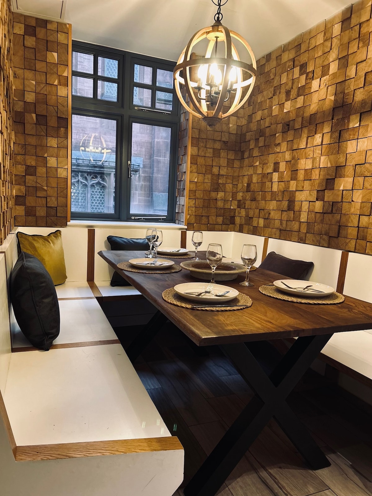 Urban Oasis er et skreddersydd luksushjem med tre soverom i Northenden, designet for å tilby et helt unikt opphold. Dette hjemmet er gjennomtenkt innredet til høyeste standard, og blander eleganse og komfort sømløst, og skaper en rolig utflukt som ingen andre. Det som skiller det fra hverandre, er den eksepsjonelle kvaliteten på finishen, inventaret og innredningen, kombinert med et avslappet, tretopphusinspirert tema. Perfekt for gjester som søker en unik opplevelse. Flott for familiesammenkomster.