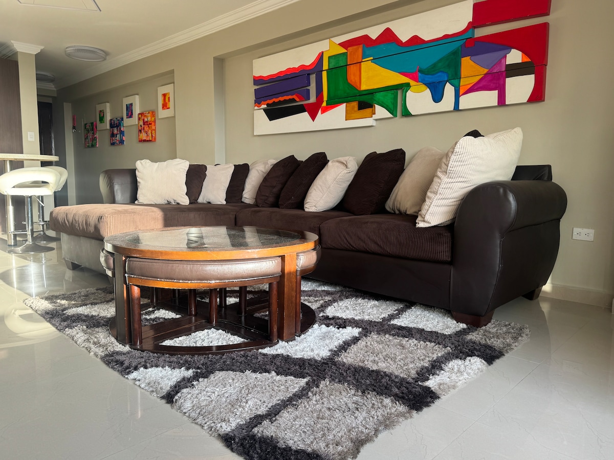 Velkommen til hjemmet ditt i Alaqua 2000-bygningen, som ligger i Pampatar Playa el Angel. Et område fullt av dag- og natteliv. Leiligheten har en moderne stue utstyrt med en TV, et kjøkken med en elegant øy, tre komfortable soverom, hvert med eget bad, to sentrale klimaanlegg og to overbygde parkeringsplasser. Boligkomplekset tilbyr et upåklagelig sosialt område, inkludert et forfriskende basseng og en lekeplass for barn.