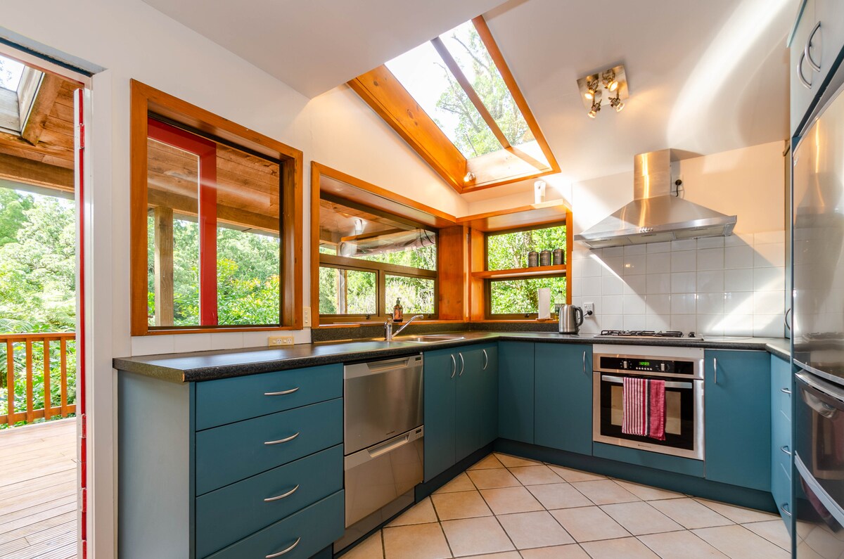 The Treehouse ligger i skyggen av et bladverk av makrocarpa-trær ved foten av Mt Taranaki nasjonalpark, og er et voksent barndomsfristed. En gjenbrukt spiraltrapp bygget av resirkulerte materialer tar deg oppover de mange nivåene i The Treehouse til et avsidesliggende oppholdsrom mellom trærne. Slapp av i løvtaket, sving deg opp i huskene eller skli nedover sklien. Dette selvforsynte tretopphuset drives av fornybar energi og ligger bare en kort kjøretur fra New Plymouth, lokale strender og fjellet.