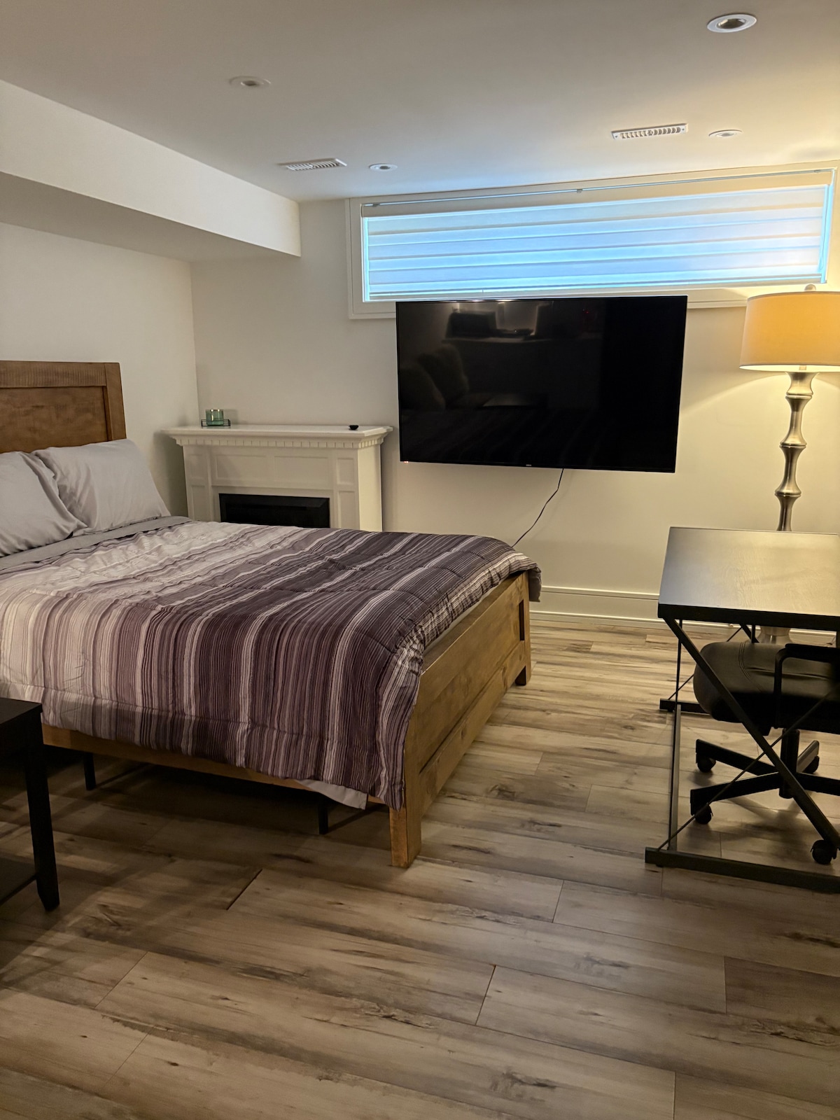 Welcome to our modern brand new 2BR, 2BA basement in Richmond Hill! Ideal for families or groups, it boasts a stylish living space, laundry area, and well-equipped kitchenette. The master bedroom features a fireplace and attached bathroom, while both bedrooms offer king-size beds and ample storage.Entertainment is provided with a TV and Wi-Fi-Netflix and Amazon prime,in a luxurious neighborhood, just a 5-minute walk to Yonge St and bus station for easy access . Experience comfort and convenience