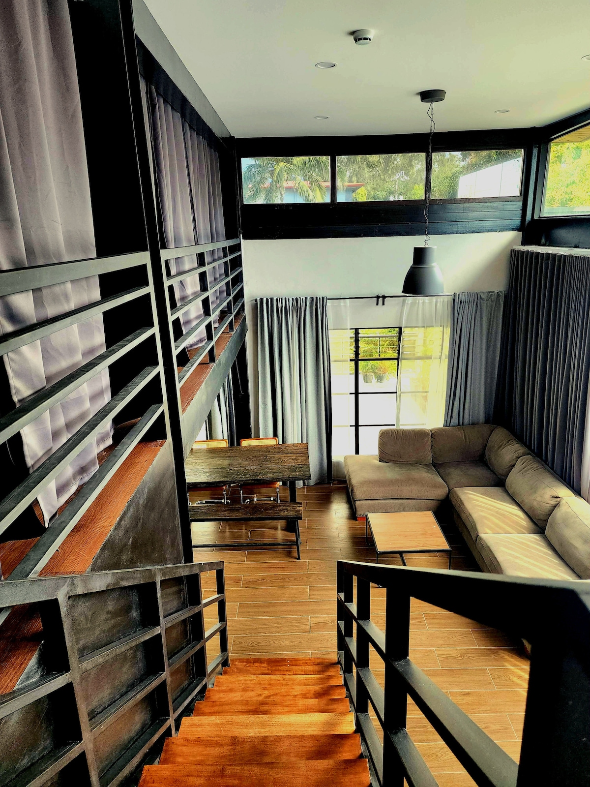 En moderne, privat villa i industriell stil hvor luksus møter fredelig tilflukt. Plassert i Tagaytay-Calamba Road (ja, du får nyte Tagaytay-været uten å gå gjennom Tagaytay-trafikk), er stedet tilgjengelig via flere utgangspunkter fra Metro Manila - Mamplasan/CALAX, Sta. Rosa, Greenfield/Eton eller Silangan. Kun 10 min. fr. Nuvali og 4 minutter fra det gamle Marcos Twin Mansion, får du nyte et friskt pust og avslappende pittoresk utsikt over Mount Makiling, Laguna de Bay, Talim Island og MMla
