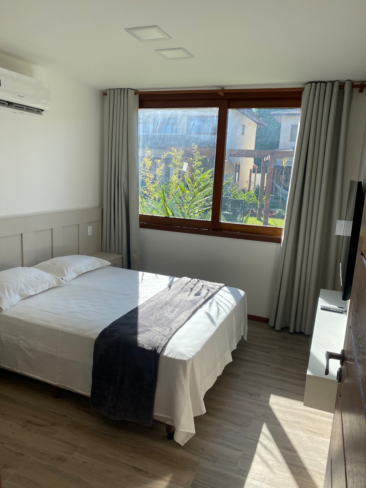 Det er et rolig og stilig sted 200 meter fra stranden, midt i den opprinnelige vegetasjonen! Vi er LGBTQIAP+ vennlige, og fordi vi er langt fra sentrum av samfunnet, nyter vi stillhet, ro og privatliv, men fem minutter fra det livlige! Suiten har en hengekøye for hvile, queen size-seng, kjøkken utstyrt med alt du trenger for å tilberede måltidene dine. Badet har reserverte områder som garanterer privatlivet ditt. Slapp av i dette rommet!