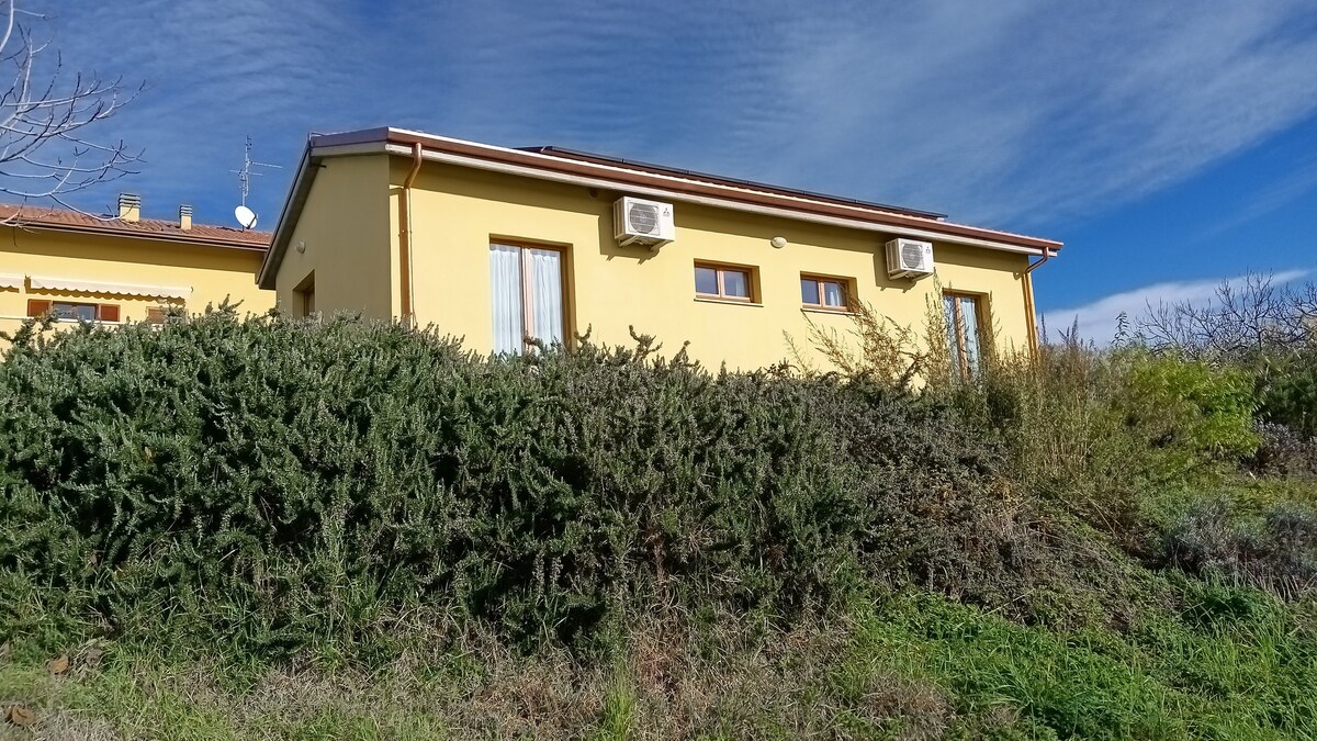 Helt hus med park, en oase av fred og avslapning. Dette lille, men komfortable huset ligger i Marche-fjellene. Provinsveien til Corinaldo, en vakker landsby ca. to km unna, går rundt hagen til huset. Huset er omgitt av en stor, inngjerdet hage. På husets private parkeringsplass er det en ladestasjon for gratis bruk av gjester. Det lille huset ligger bare noen få kilometer fra den berømte stranden Senigallia.