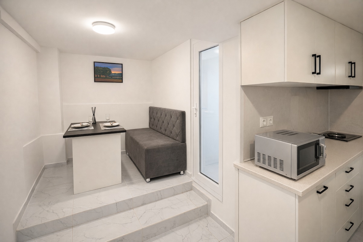 Opplev Baku fra den utsøkte studioleiligheten vår med utsikt over Boulevard! Bare fem minutters spasertur til sjøen, og ti minutters spasertur til Deniz Mall og fem minutter med taxi til sentrum. Ligger i en ny, sikker bolig med en concierge. Nyt bekvemmeligheten med en supermarked på stedet i første etasje. Unn deg treningsstudioet/spasenteret (ikke inkludert). Leiligheten har ett soverom, en seng som kan legges ut i stuen og en moderne komfortdusj.