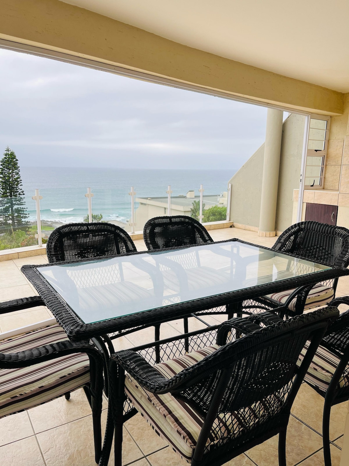 Komplekset er for familier. Nyoppusset. Ogwini 10 i Uvongo. Ett minutts gange til tidevannsbassenget og to minutter til stranden og lagunen. Noen få km fra Margate på sørkysten av Kwazulu Natal ligger en smakfullt møblert toppetasjeleilighet med selvbetjening og utsikt over sjøverste etasje med plass til maksimalt seks personer. Det er en utrolig 180° utsikt over havet, inkludert stranden, tidevannsbassenget og Uvongo-bryggen. Direkte tilgang til Uvongos hovedstrand og fossefall, eller du kan bare fiske på piren eller fra klippene, eller svømme i bassenget.