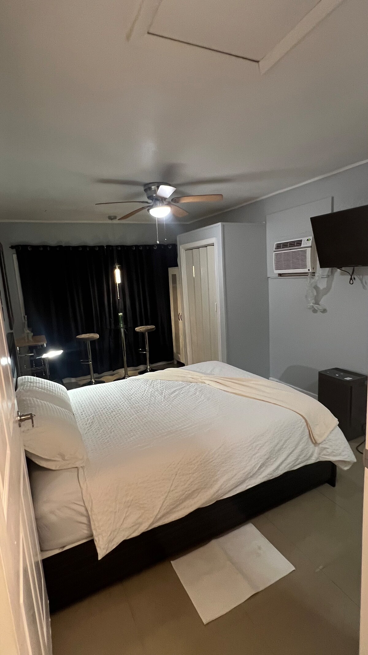 Welcome to your beachside retreat in Pompano Beach, just 1 mile from the sand. This cozy studio features a queen bed, renovated bathroom, and a kitchenette. Enjoy a smart TV, fast internet, and cold A/C or unwind on the private patio for grilling, sunbathing, or lounging. Nearby, discover local dining, watersports, and golf. With a private driveway, covered carport (EV charging Nema Outlet), and space for 3 cars, this studio is your ideal base for exploring South Florida's coastal charm.