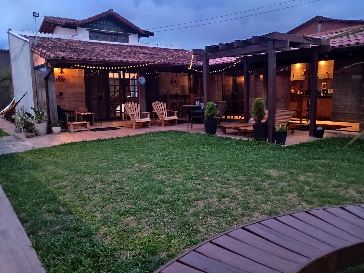Ideelt sted for familien din å nyte avslapning uten støy fra storbyen, et sted for hvile, fred, vi har bybusser med faste tider. Grill, biljardbord, smart-TV, trådløst nettverk, svømmebasseng, gourmetområde med balkong og hengekøye for å hvile. Alle nødvendige redskaper for å lage måltider, frokost, komfortabelt bord og stoler. Vi aksepterer små kjæledyr. Vi tilbyr bare vanlige laken og putetrekk som er lagt på sengene. *VI TILBYR IKKE TEPPE, BADETEPPE