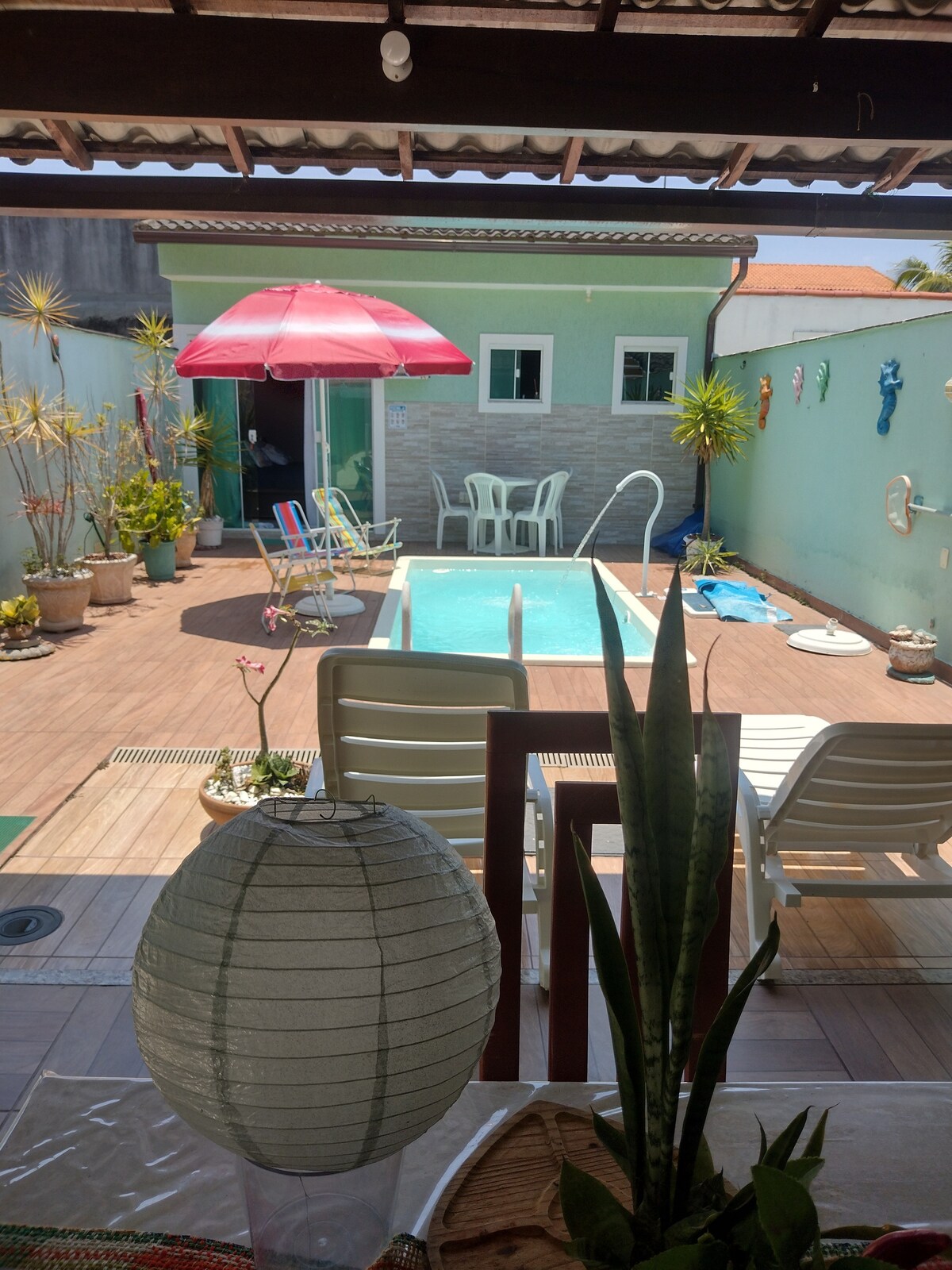 Du trenger ikke lenger å komme tilbake fra Itaipuaçú etter arrangementet ditt. Tilbring en kveld ute og slapp av for et par eller som en familie i dette fantastiske og rolige overnattingsstedet. Gjestesuite med basseng og fullt gourmetområde, helt privat for én eller flere netter. Hele og ikke-delt plass hvor hovedhuset er stengt. Vi har en minibar, et smart-TV-notatbord, en JBL-boks, en vifte og madrasser (i tilfelle tre personer). Vi har en parasoll, en elektrisk grill, en strandstol og en termisk pose.