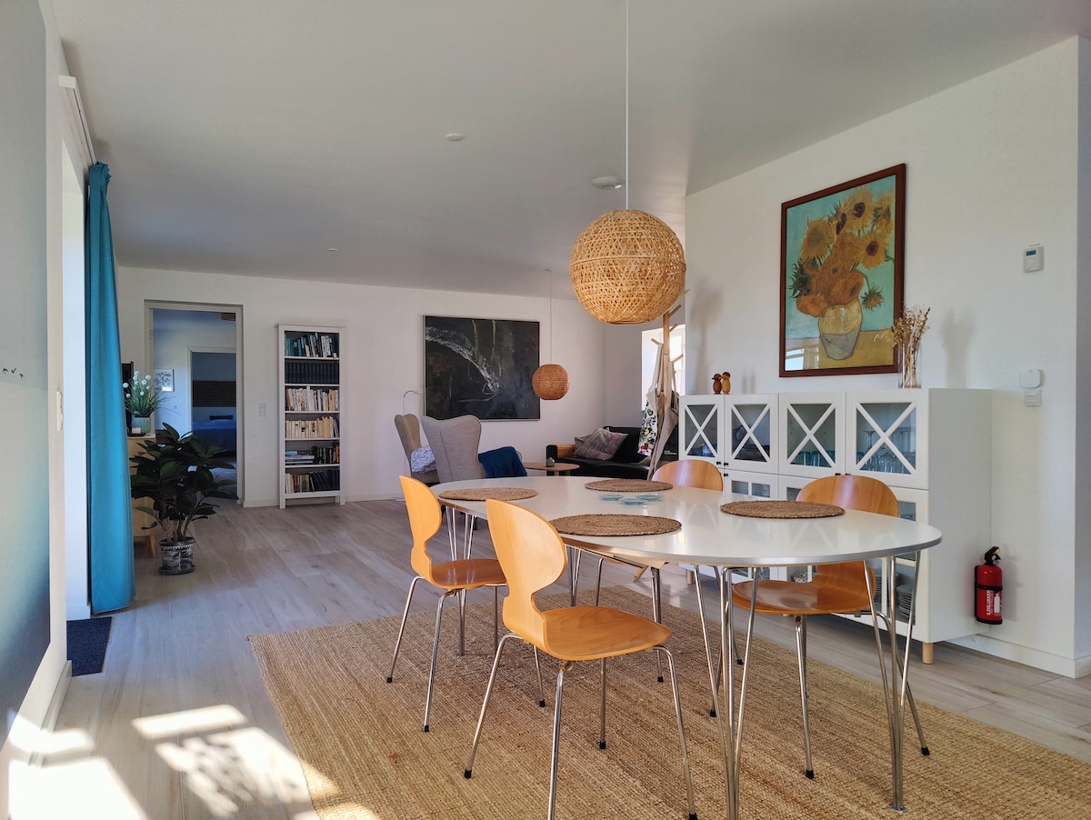Velkommen til den elegante leiligheten vår i en egen fløy av hjemmet vårt på Hasselø, Falster! Denne enheten er perfekt for opptil to gjester og har et fullt utstyrt kjøkken, en komfortabel stue, et soverom med en queensize-seng og et stilig bad. Få tilgang til en sjarmerende bakgård med bord og stoler, perfekt for morgenkaffe eller avslapning om kvelden. Du kommer til en plettfri leilighet med nyoppredde senger og rene håndklær inkludert. Vi ber gjestene om å behandle leiligheten med forsiktighet.