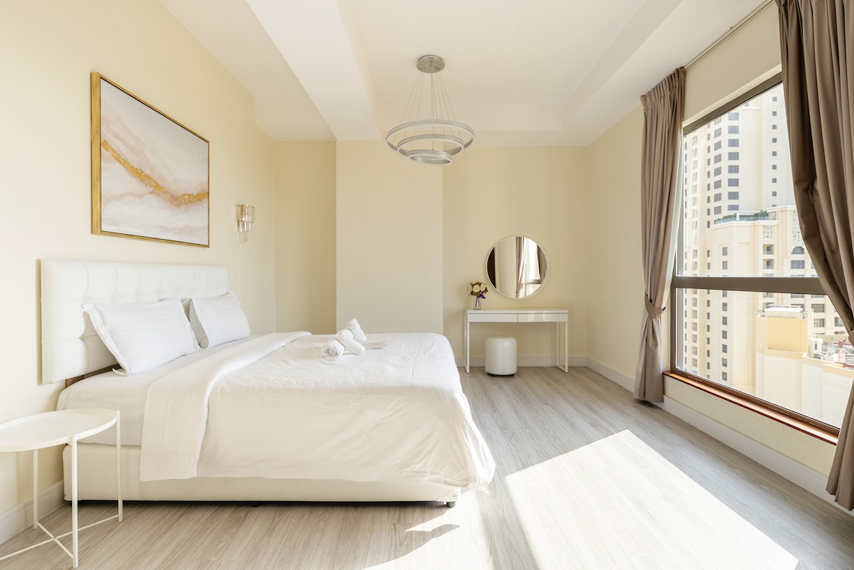 VELKOMMEN til hjertet av JBR❤️ Velkommen til La VIE … Bygningen ligger ved havet. 🌊 – Har egen GRATIS PRIVAT STRANDTILGANG. – Hovedbassenget med panoramautsikt over sjøen og barnebasseng. – Cove Beach Club er tilgjengelig (besøksvilkårene kan endre seg). Leiligheten er veldig romslig (85 kvm). Ideen med dette stedet handler ikke bare om komfort, mote, luksusliv og oppmerksomhet på hver detalj. De tre viktigste ønskene for oss er: •Du føler deg hjemme her •Skap uforglemmelige minner. •Få gjestene til å komme tilbake igjen♥️