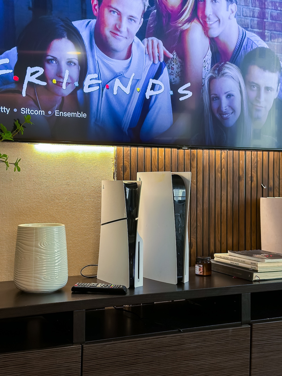 • 5 minutters gange til Dubai Marina Mall & Pier 7. • Seks minutters gange til tilgang til JBR-stranden. • To minutters gange til Marina T-banestasjon og trikk. • Seks minutters kjøring til Dubai Eye • Seks minutter med kjøring til Blue Water Island. • TRÅDLØST NETTVERK med høy hastighet. • NETFLIX-show og kanaler fra hele verden gjennom DU life • 65 tommers (OLED-TV) for både soverom og stue. • strykeutstyr • vaskemaskin/tørketrommel og støvsuger • Fullt utstyrt kjøkken. • Resepsjon og sikkerhet døgnet rundt resepsjon og sikkerhet • Concierge-fasiliteter