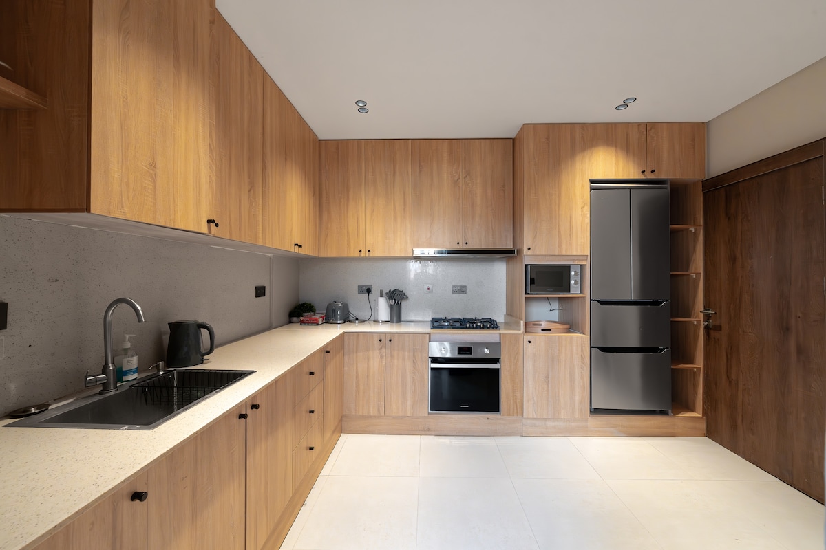 "Velkommen til ditt luksuriøse hjem hjemmefra! Gå inn i vår fantastiske leilighet med tre soverom, utsmykket med sofistikerte møbler som blander komfort og stil sømløst. Det velutstyrte kjøkkenet og badet vårt sikrer bekvemmelighet og avslapning under oppholdet. Enten du er her i forbindelse med jobb eller fritid, kan du nyte den ultimate komforten og nyte den perfekte balansen mellom eleganse og praktisk. Bestill nå for en uforglemmelig opplevelse!"