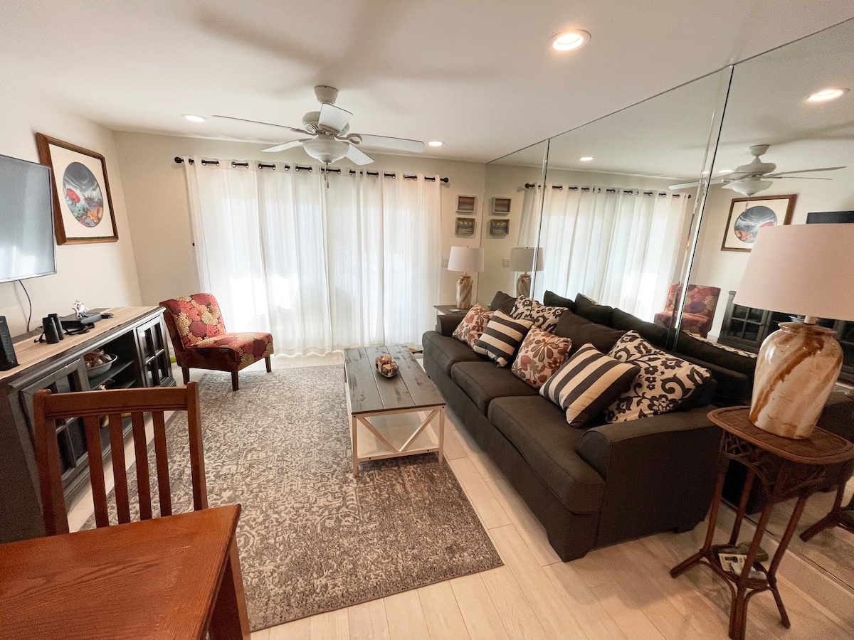 Nyt å utforske vakre, historiske St. Augustine, og slapp av på dette private, rolige feriestedet ved stranden, som ligger innenfor en kort spasertur til stranden. Separat nøkkelfri inngang tillater innsjekking uten vert. Queensize-seng, fullt møblert, med fasiliteter som en Keurig-kaffemaskin, strykejern, hårføner, strandcruiser-sykler, strandstoler, håndklær, parasoll og gassgrill for matlaging. Flatskjerm-TV-er i både stuen og på soverommet med Netflix og Amazon Prime inkludert og gratis trådløst nettverk.