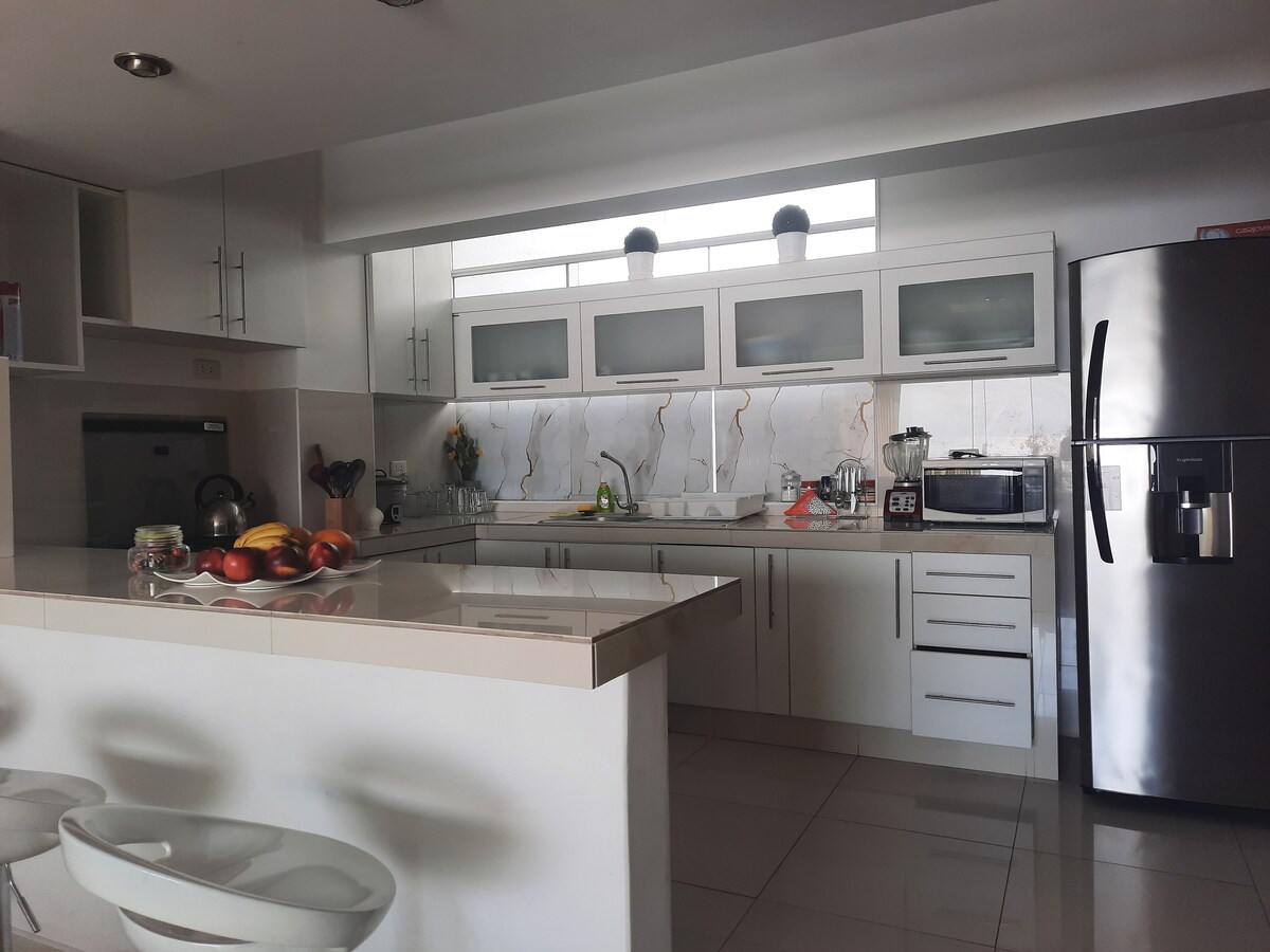 Er du på utkikk etter et elegant og praktisk sted å bo? Du trenger ikke lete lenger! Vår sentralt beliggende utleie tilbyr den perfekte blandingen av stil, komfort og tilgjengelighet. ✨ Funksjoner: Moderne og smakfullt innredet interiør Fullt utstyrt kjøkken for alle dine kulinariske behov Komfortable senger med mykt sengetøy for en god natts søvn Trådløst nettverk med høy hastighet og en smart-TV. Førsteklasses beliggenhet i sentrum av Moquegua. Enten du er på besøk i forbindelse med jobb eller fritid, gir utleiestedet vårt den ideelle hjemmebasen for oppholdet ditt.
