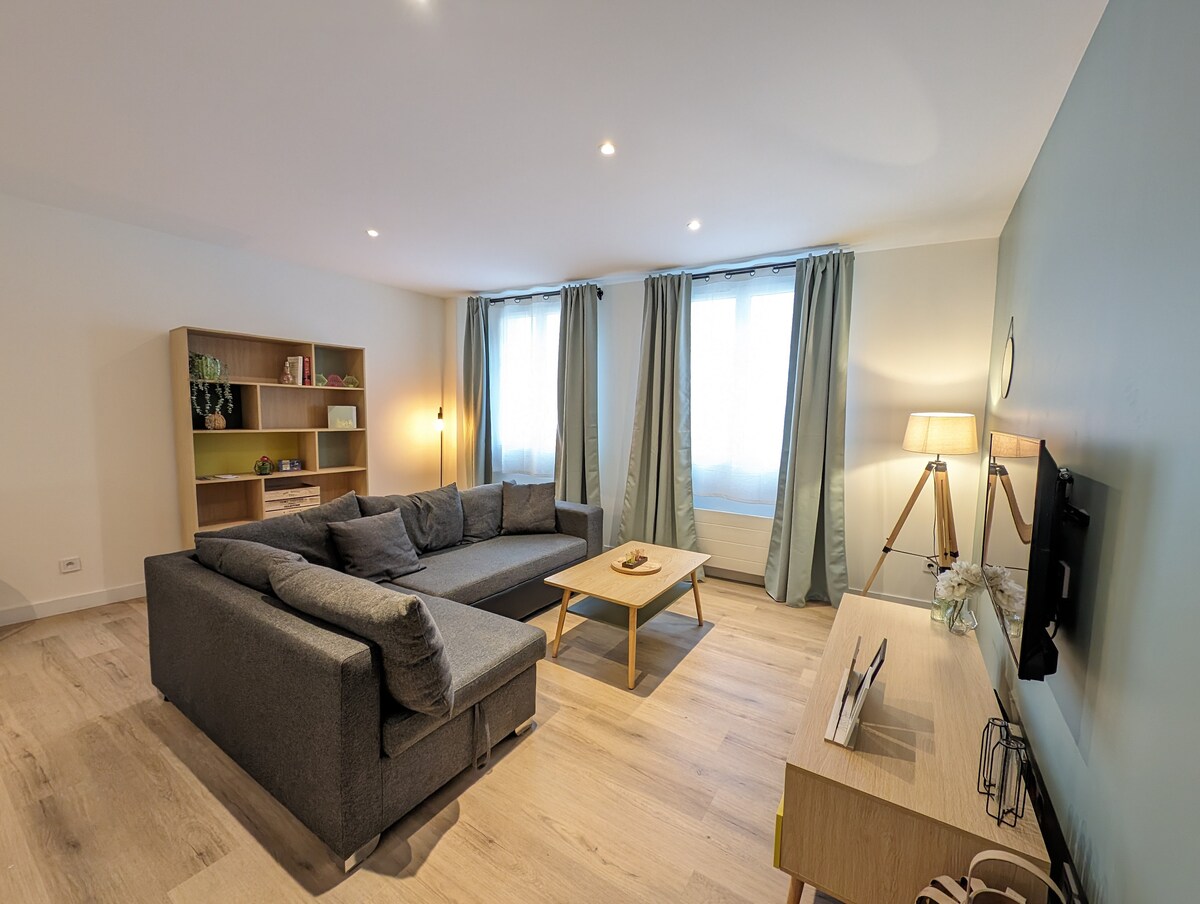 Romslig bolig på 80 m2, ideell for en familie med barn, venner, fjernarbeid eller forretningsreiser, med alt moderne utstyr og privat parkering. 6 minutter med bil fra alle fasiliteter Fordeler: Tilgang til motorvei A4 5 minutter, mindre enn 30 minutter fra DISNEY og 55 minutter fra Paris via A4. SNCF-STASJON 6 minutter unna, som forlater Meaux på 17 minutter og Paris Gare de l'EST på 45 minutter Huset leies ut til maksimalt 6 personer, hver ekstra person vil bli belastet 20 euro per person