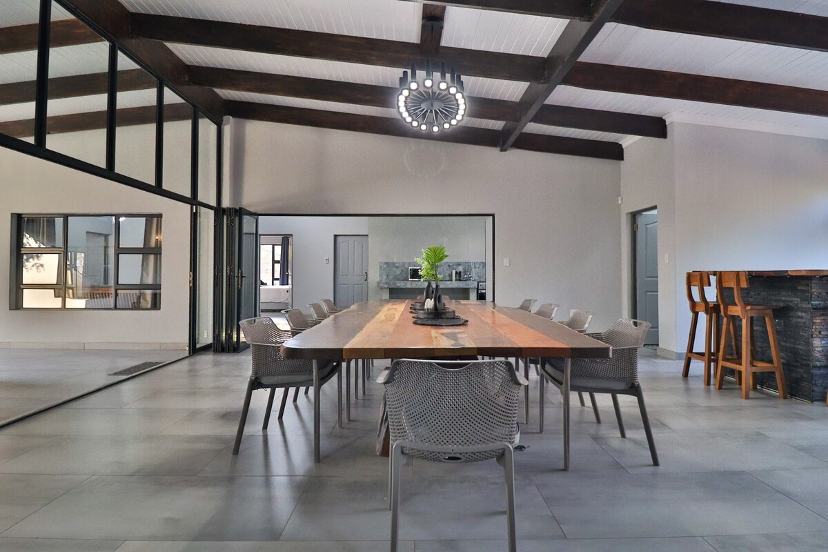 Mangwa House, i Marloth Park, er et nybygd luksuriøst og stilig hjem med plass til åtte personer. Hjemmet har fire soverom, alle med eget bad med store bad, alle med dusjer. Den åpne planløsningen med kjøkken, spisestue og stue gir romslig oppholdsrom og avslapning. Kjøkkenet er fullt utstyrt. Det er en stor uteplass med spise- og avslapningsområder, et privat basseng og boma som bidrar til den fredelige omgivelsen i bushen.