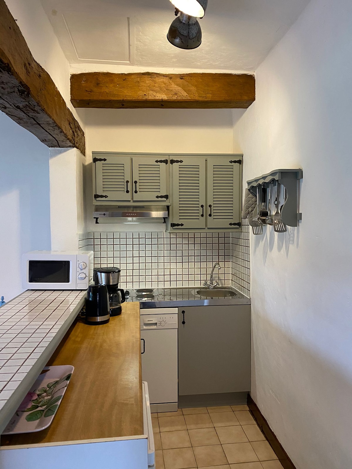 Hytta ligger i en gårdsbygning ved siden av hovedhuset. Hytta består av et fullt utstyrt kjøkken (oppvaskmaskin - kjøleskap med fryser - vaskemaskin - kaffetrakter - brødrister - vannkoker) med sittegruppe og spiseplass - 2 soverom - 1 bad med dusj og toalett - det første soverommet har en seng for 2 personer, det andre soverommet, som er tilgjengelig fra foreldrenes soverom, har 2 senger på 90