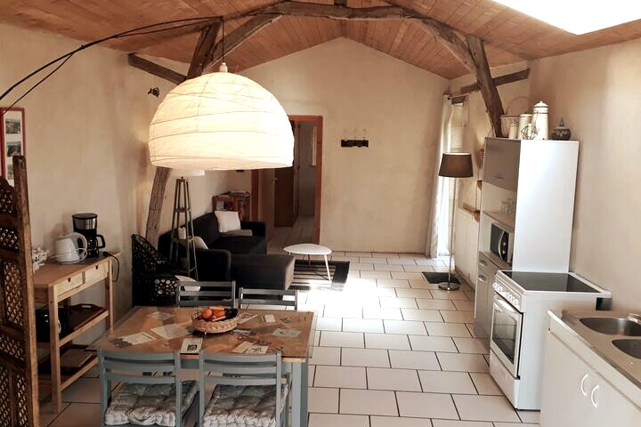 5 minutter fra sentrum av Poitiers og ligger i et rolig område, denne leiligheten for 2 personer er ideell for et avslappende opphold. Stue med TV og Netflix, bord med løftbart brett, utstyrt kjøkken, bad med dusj. Privat hage uten overforliggende hus, elegante hagemøbler og oppvarmet boblebad med utendørs dusj er de store fordelene med denne sjarmerende leiligheten. Enten dere er et par eller venner, vil den la dere oppdage Poitiers-regionen.